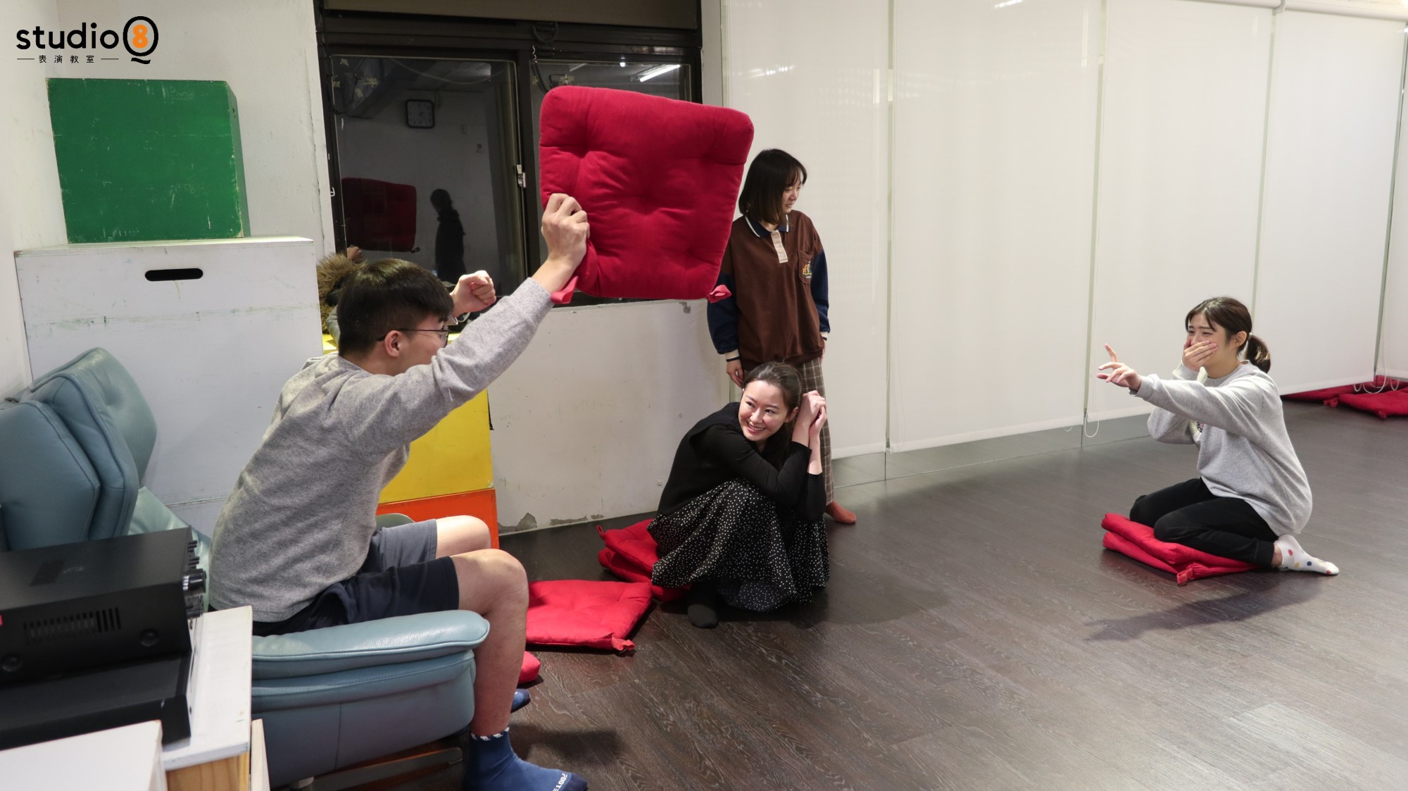 接著大家的新任務是在教室中隨意找地方停留,一個接一個中性的、拋掉自身個性的站起、前進,找個地方面對觀眾站五秒、走回,下一階段再加入和教室任何物件互動的定格動作,這是一個很神奇的過程,明明就只是單純的站立,不同的位置卻有那麼一些不一樣的感覺,加入定格動作後那感覺更強烈了,每個靜止的人都在述說故事,所有選擇都透露著訊息,引領我們發現這習以為常的教室裡不曾注意到的事物。