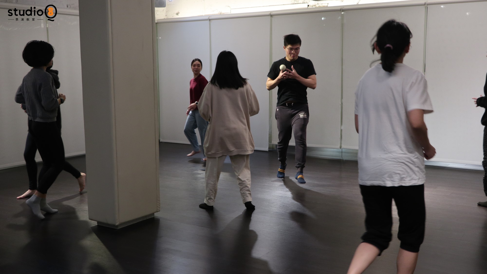 這次的課程我們從感官的打開開始,在暖身時,有意識的覺察自己在活動的部位,覺察到我在觸碰我自己,我在給自己熱能,而縱使眼睛無法一次看到四面八方,仍然可以感覺到在這個空間中,所有人的分布情況,進而大家可以一起努力在不同速度行走時均勻分布於空間。